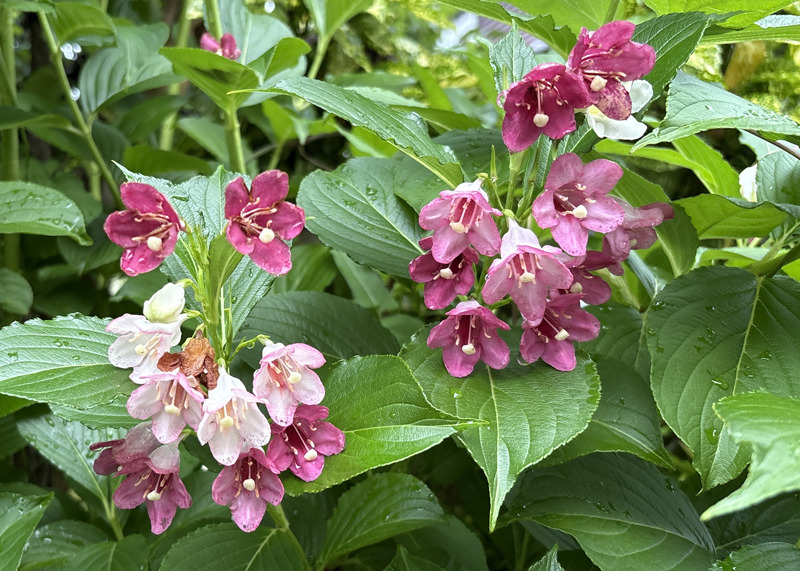 ・ 5時半から近所をウォーキング。一足先にカシワバアジサイ(柏葉紫陽花)が満開で、七変化も色付き始めている。
